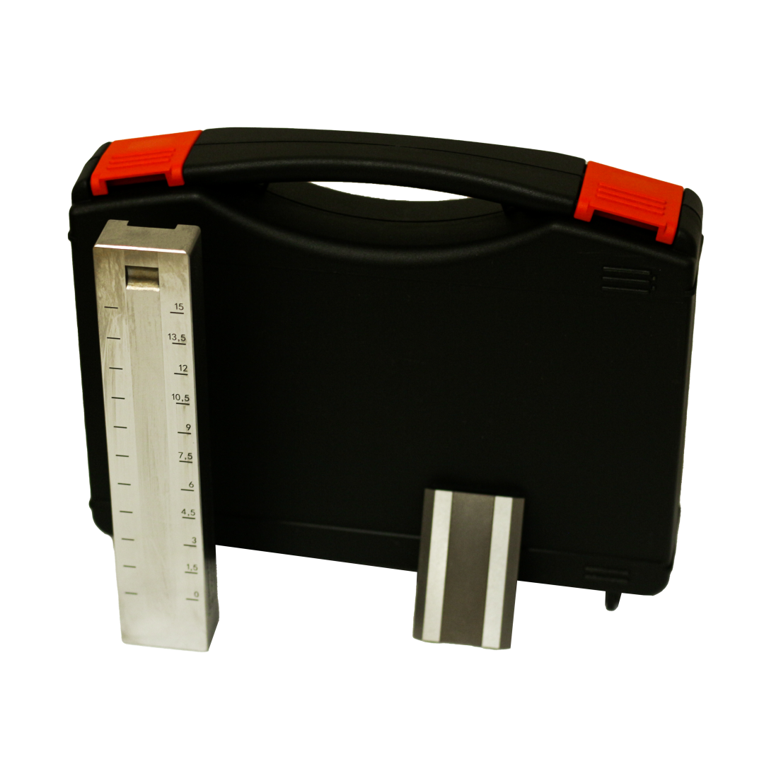 Прибор состоит из стальной измерительной плиты и скребка. На измерительной поверхности плиты вдоль нее выполнен клинообразный паз с равномерно увеличивающейся глубиной от «0» до максимального предела измерения прибора. По краям паза нанесена цифровая шкала. Глубина паза соответствует шкале прибора.