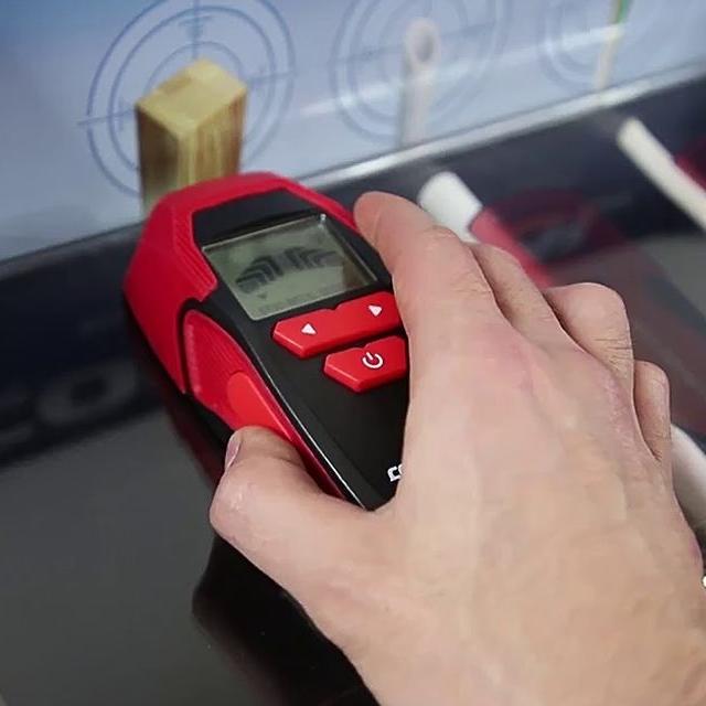 Когда прибор находит скрытый объект, он формирует световой луч, по которому можно определить трассу инженерной коммуникации или ось конструкции.