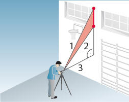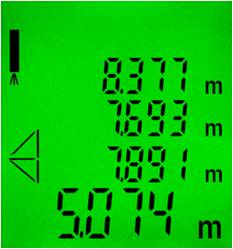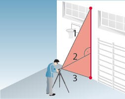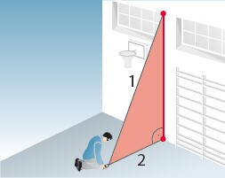 Достаточно двух измерениий для косвенного вычисления горизонтального или вертикального расстояний. Важно обеспечить, чтобы второе измерение было выполнено под прямым углом к цели.