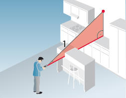 Вы можете измерить расстояние до видимого участка стены, и дальномер сам вычислит прямое расстояние через препятствие.