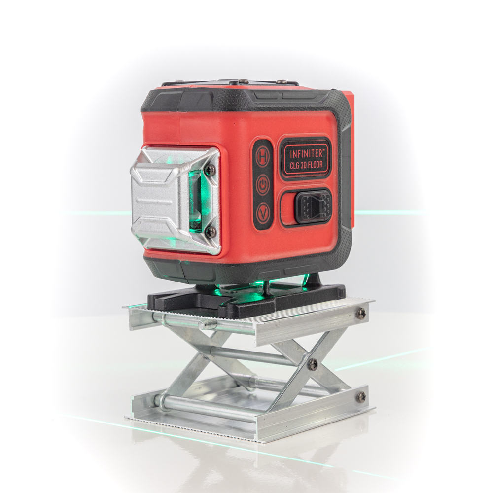 Лазерный нивелир INFINITER CLG 3D FLOOR проецирует две вертикальные и одну горизонтальную плоскости с углом развертки 360°.