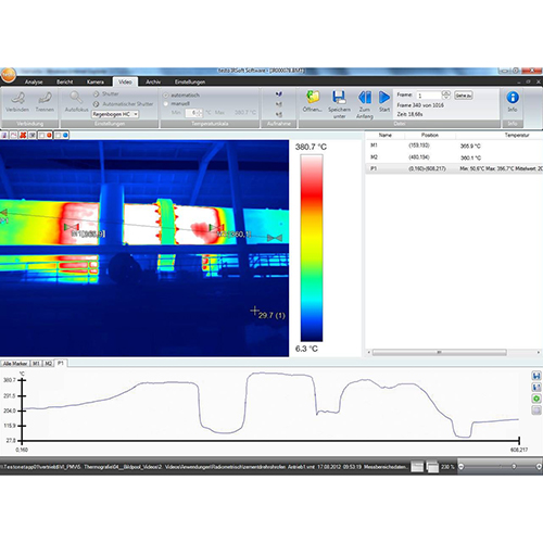 Визуализируйте тепловые процессы и анализируйте их в деталях с пакетом анализа процессов для тепловизоров testo 885 и testo 890. В ограниченных условиях эксплуатации последовательности термограмм сохраняются прямо в тепловизоре и сравниваются во временной последовательности с помощью программного обеспечения IRSoft. При подключении к ПК вы также можете сохранять термограммы в виде полностью радиометрического видео для последующего масштабирования и анализа.