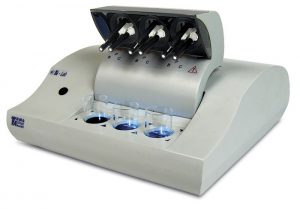 Особое значение в вольтамперометрических измерениях имеет чистота тиглей, применяемых для пробоподготовки. В методиках измерений для анализаторов вольтамперометрических типа ТА в качестве тиглей рекомендуется использовать кварцевые стаканы. Для сокращения времени и упрощения отмывки стаканов, используемых для пробоподготовки, применяют озонирующее устройство Чисто-ТА. Высокая эффективность отмывки в Чисто-ТА достигается благодаря совместному использованию озонирования и перемешивания растворов путем вибрации.