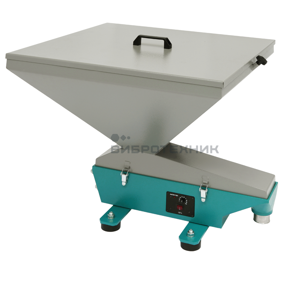 Установленный в корпусе блок управления предназначен для регулирования работы вибровозбудителя, состоящего из якоря и катушки. Ось якоря расположена под углом к горизонту, что обеспечивает оптимальные условия для транспортировки материала по лотку.
