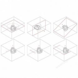Эта модель позволяет отстраивать в пространстве горизонтальную или вертикальную плоскость на 360°, а также проектировать точку зенита, для быстрого переноса разметки с пола на потолок.