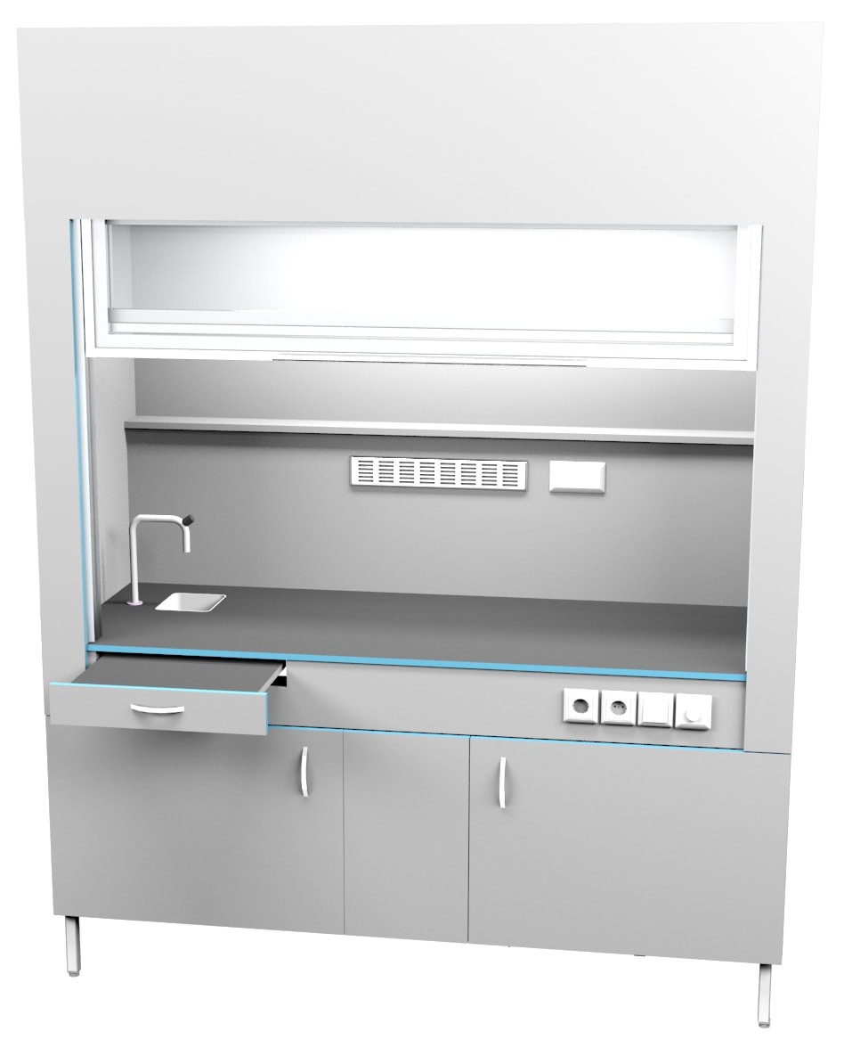 Шкаф вытяжной с сантехникой ШВ НВК 1800 ЭПОК+ (1800×716×2200). Описание: Вытяжные лабораторные шкафы применяются при работе с токсичными и вредными летучими материалами, с чистыми материалами, с растворением или разложением под температурной обработкой, при проведении анализа проб и многих других. Особенности: Полипропиленовая раковина, обладающая высокой химической стойкостью Химически стойкий кран из латуни с полипропиленовым напылением для подключения холодной воды Дополнительная подсветка сбоку с плавной регулировкой Выдвижной столик Вытяжка из нижней тумбы позволяет хранить в ней реактивы Ударопрочный подъемный кран легко поднимается одной рукой Экран в поднятом состоянии не увеличивает высоту шкафа Внутри рабочей камеры полочка для хранения реактивов Две влагозащищенных розетки с крышкой внутри рабочей камеры Специальные доводчики в тумбе позволяют закрывать тумбу бесшумно По заказу столешницы могут быть выполнены из: химстойкого пластика керамогранита (плитка) полипропилена нержавеющей стали монолитной керамики эпоксидного керамзита