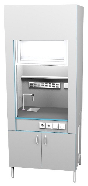 Шкаф вытяжной с сантехникой ШВ НВК 900 НЕРЖ+ (900×716×2200). Описание: Вытяжные лабораторные шкафы применяются при работе с токсичными и вредными летучими материалами, с чистыми материалами, с растворением или разложением под температурной обработкой, при проведении анализа проб и многих других. Особенности: Полипропиленовая раковина, обладающая высокой химической стойкостью Химически стойкий кран из латуни с полипропиленовым напылением для подключения холодной воды Дополнительная подсветка сбоку с плавной регулировкой Вытяжка из нижней тумбы позволяет хранить в ней реактивы Ударопрочный подъемный кран легко поднимается одной рукой Экран в поднятом состоянии не увеличивает высоту шкафа Внутри рабочей камеры полочка для хранения реактивов Две влагозащищенных розетки с крышкой внутри рабочей камеры Специальные доводчики в тумбе позволяют закрывать тумбу бесшумно По заказу столешницы могут быть выполнены из: химстойкого пластика керамогранита (плитка) полипропилена нержавеющей стали монолитной керамики эпоксидного керамзита