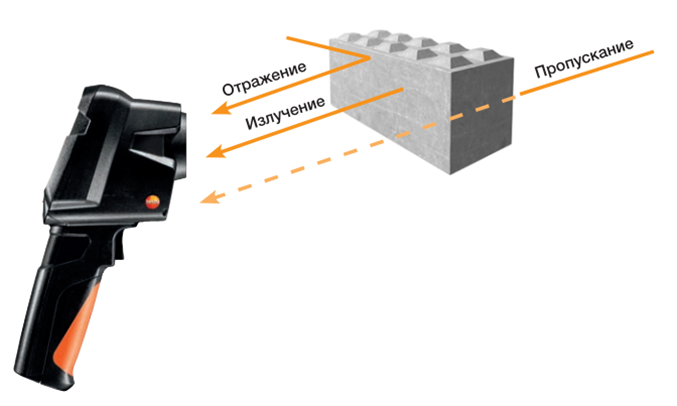 Коэффициент отражения — это мера способности материала отражать инфракрасное излучение. В целом гладкие отполированные поверхности обладают большей способностью к отражению, чем грубые и матовые поверхности, сделанные из того же материала. Если взять уже упомянутый бетон, он отражает 7 % окружающего инфракрасного излучения. При измерении объектов с низким коэффициентом излучения необходимо учитывать отраженную температуру. Фактор компенсации в тепловизоре позволяет рассчитать коэффициент отражения и тем самым повысить точность измерения температуры. Эту величину можно задать в тепловизоре.
