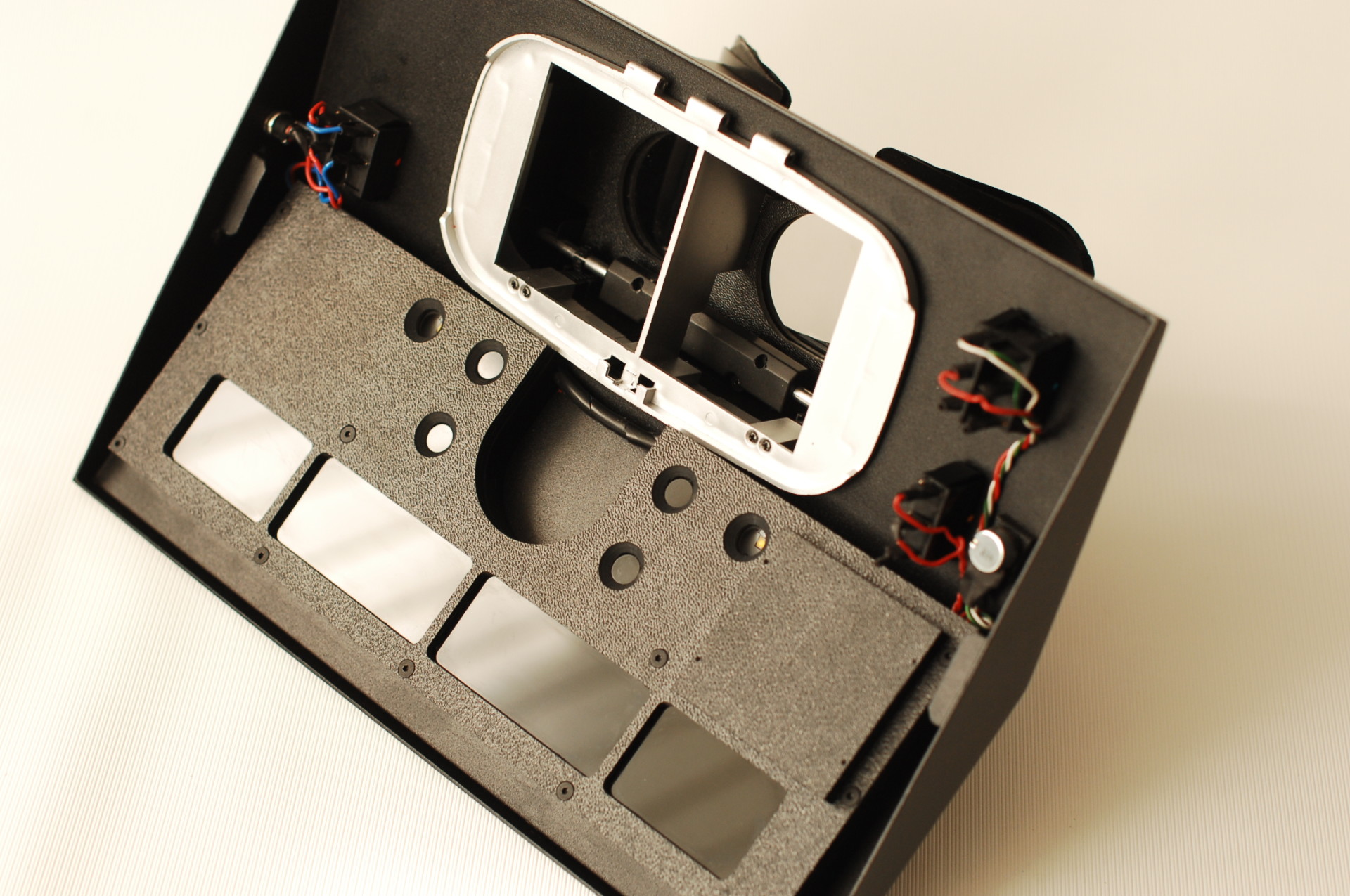 Просмотр осуществляется в закрытой от внешнего освещения наблюдательной камере через би — окуляр с защитным светофильтром, поглощающим УФ-излучение. Это позволяет обеспечить нормальные условия работы с прибором.