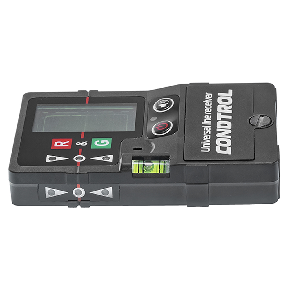 ULR CONDTROL существенно увеличивает диапазон работы лазерных нивелиров. Показания снимаются по шкале мишени, расположенной на поверхности отражателя с тыльной стороны, а также с помощью светодиодной индикации на фронтальной стороне. Благодаря наличию двух рабочих поверхностей, приемник отлично подходит для работы внутри помещений и на улице. Встроенный в корпус пузырьковый уровень позволяет с максимальной точностью контролировать вертикальность рейки. В верхнюю часть детектора-отражателя встроен магнит, с помощью которого аксессуар можно закрепить на потолочном профиле или вертикальной конструкции для быстрой и удобной настройки лазерного нивелира.