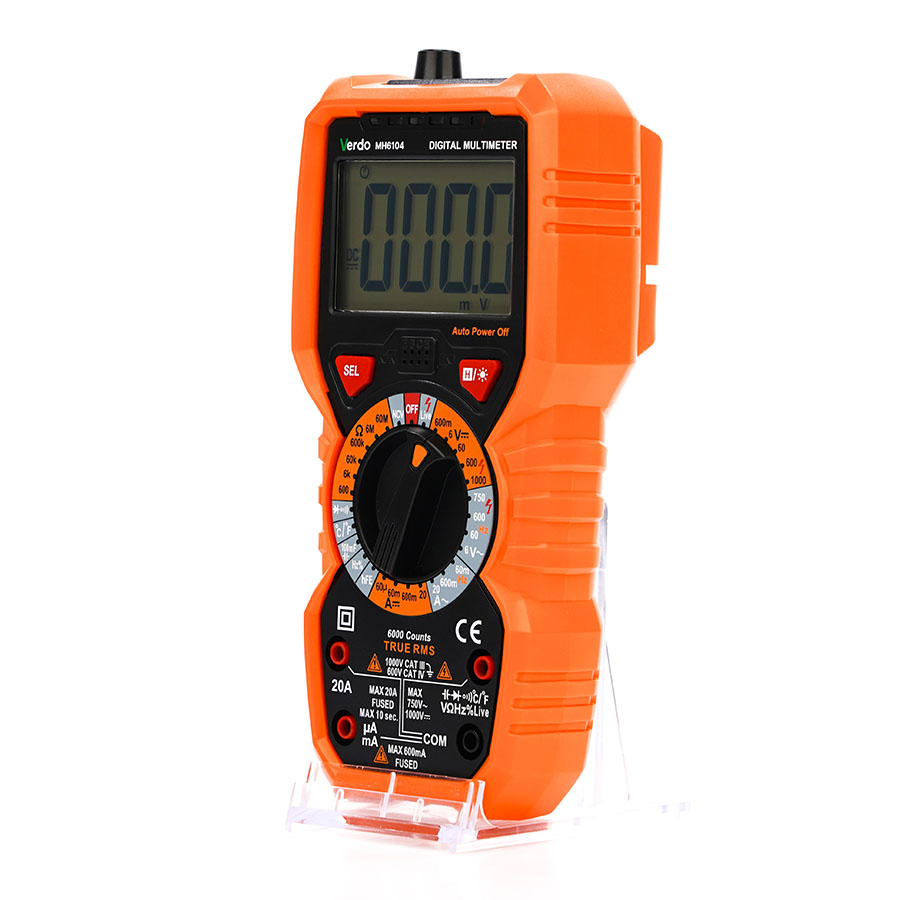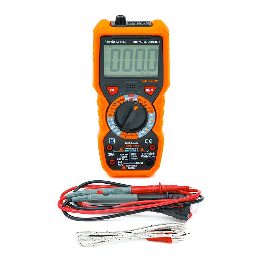 Мультиметр VERDO MH6104 – это ручной цифровой мультиметр с функцией отображения истинного среднеквадратичного значения (TrueRMS) и большим жидкокристаллическим дисплеем с подсветкой, и фонарем, что облегчает считывание показаний. Мультиметр оснащен функцией защиты от перегрузки и индикатором разряженной батареи. Этот многофункциональный измерительный прибор идеально подходит как для профессионального использования на производстве, ремонта и сервисного обслуживания, так и для обучения и бытового применения.
