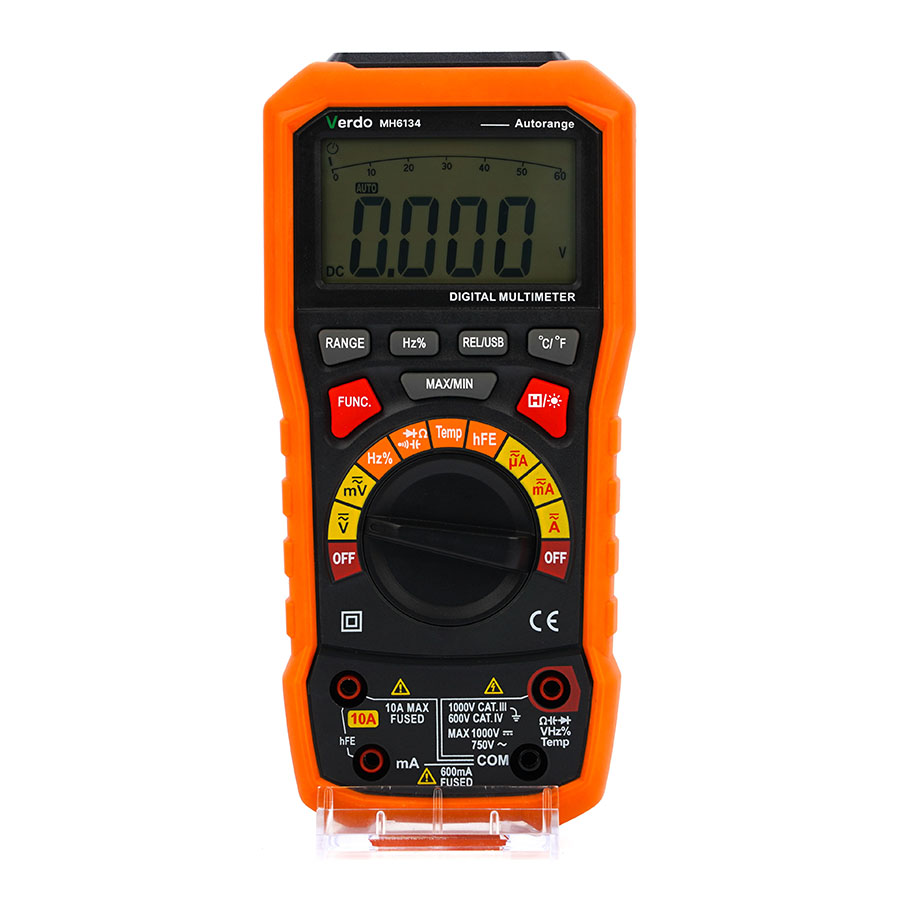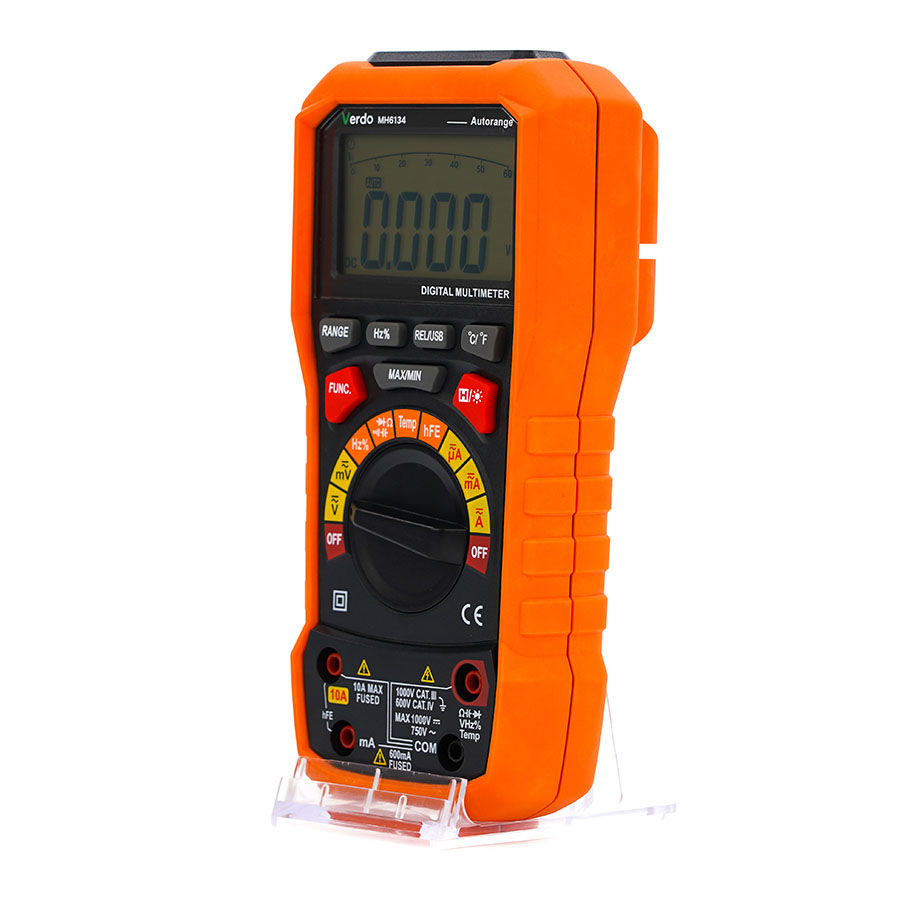 Мультиметр VERDO MH6134 – это многофункциональный ручной цифровой мультиметр с функцией отображения истинного среднеквадратичного значения (TrueRMS), большим многострочным жидкокристаллическим дисплеем с аналоговой шкалой, что облегчает считывание показаний. Передача измеренных значений величин в ПО обработки. Этот многофункциональный измерительный прибор идеально подходит как для профессионального использования на производстве, ремонта и сервисного обслуживания, так и для обучения и бытового применения.