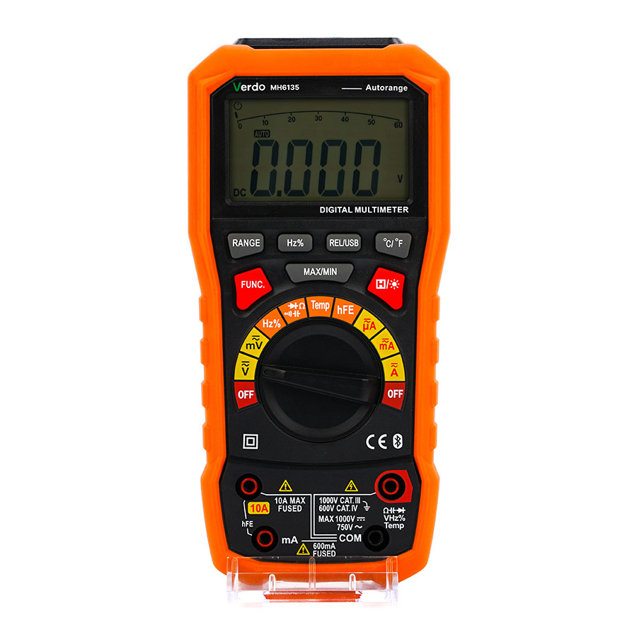 Мультиметр VERDO MH6135 – это многофункциональный ручной цифровой мультиметр с функцией отображения истинного среднеквадратичного значения (TrueRMS), большим многострочным жидкокристаллическим дисплеем с аналоговой шкалой, что облегчает считывание показаний. Передача измеренных значений величин в ПО обработки. Этот многофункциональный измерительный прибор идеально подходит как для профессионального использования на производстве, ремонта и сервисного обслуживания, так и для обучения и бытового применения.